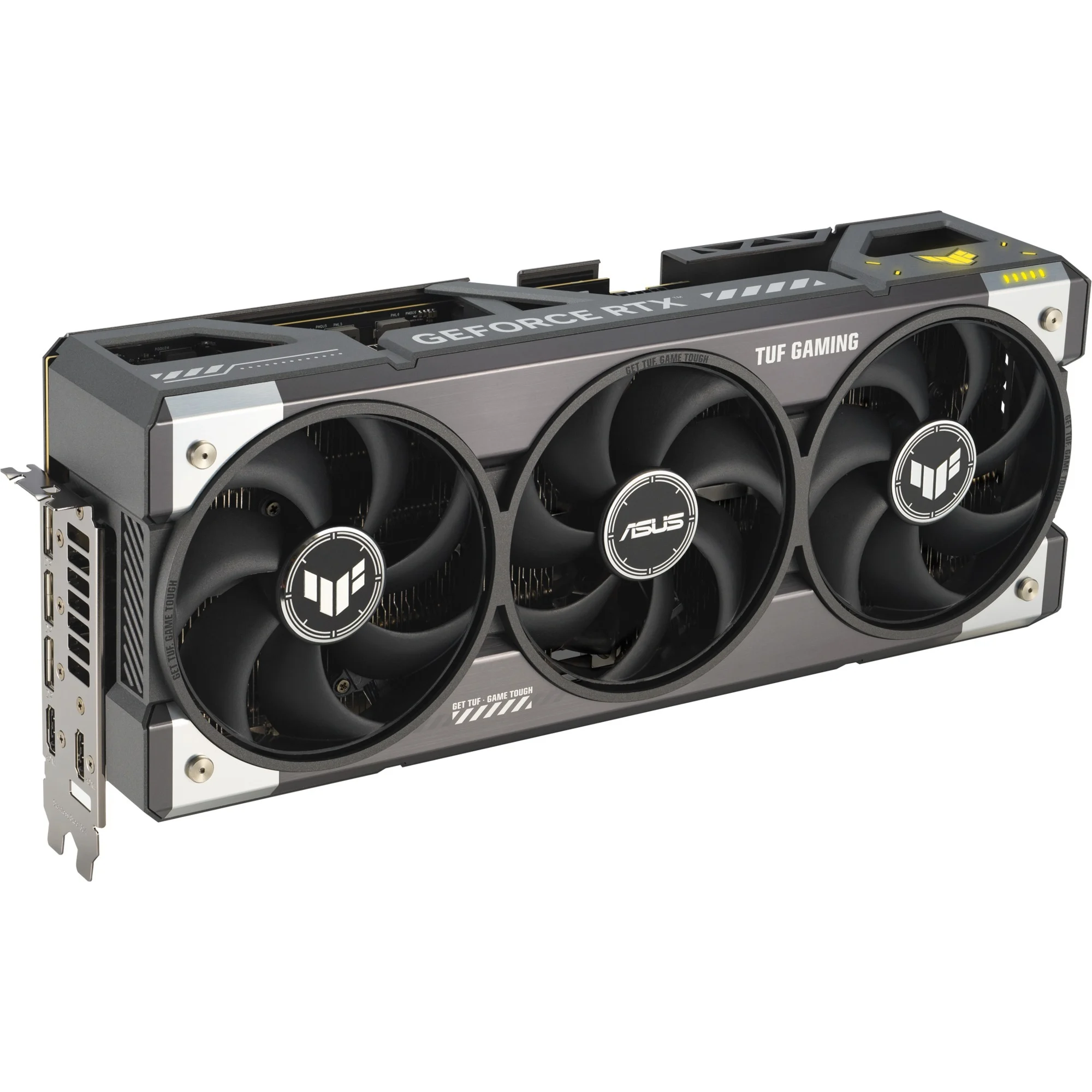 La carte ASUS TUF Gaming GeForce RTX 5080 OC est une carte graphique haut de gamme basée sur la puce NVIDIA GeForce RTX 5080. Elle dispose de 16 Go de mémoire GDDR7 adressés via une interface de 256 bits de large. Le GPU a une vitesse de boost de 2700 MHz et une vitesse de boost (OC) de 2730 MHz. La mémoire a une vitesse de 30000 MHz.