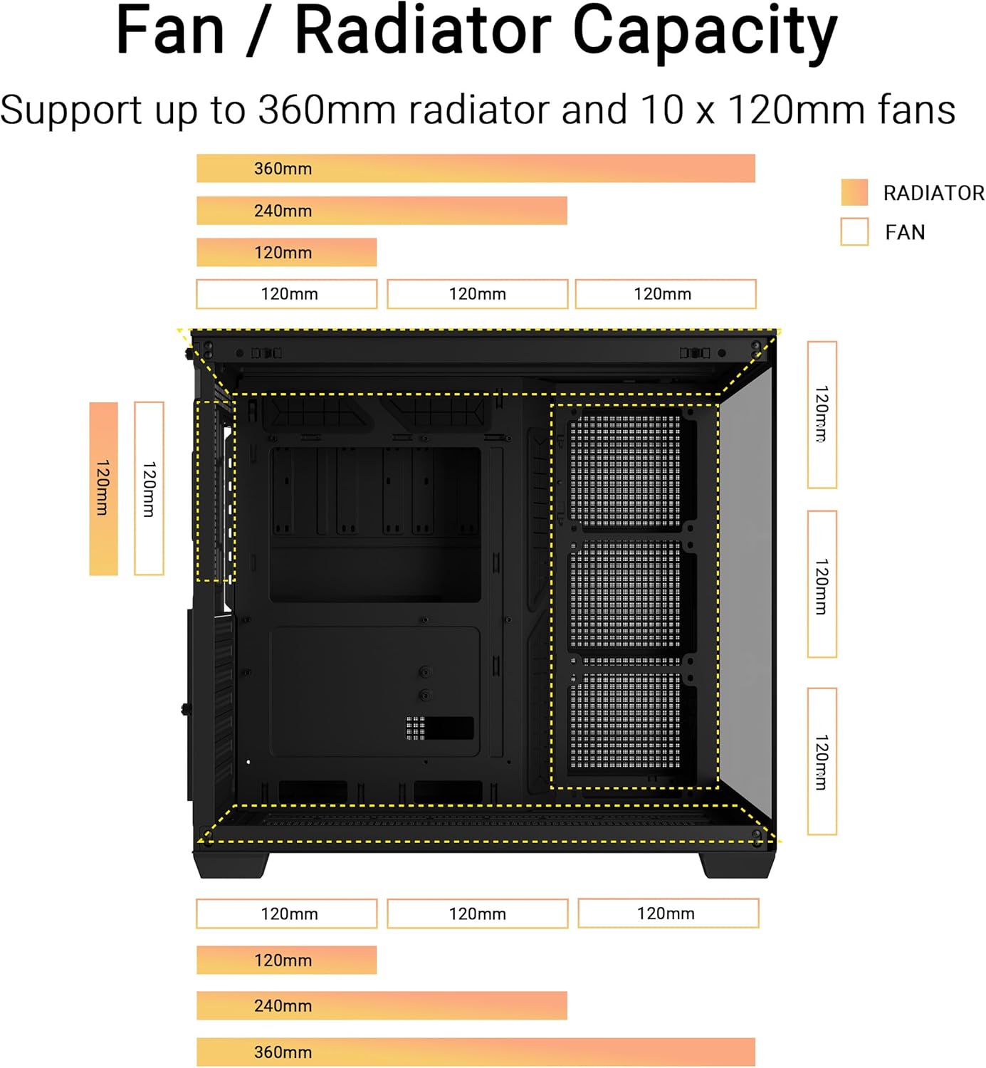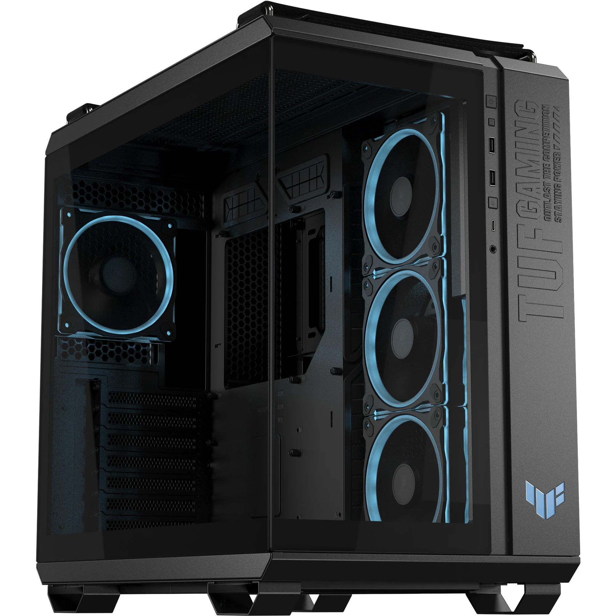 ASUS A32 PLUS ATX (radiateurs de 360 mm et cartes graphiques de 420 mm, quatre ventilateurs ASUS Prime MR 120 ARGB préinstallés, gestion des câbles soignée)