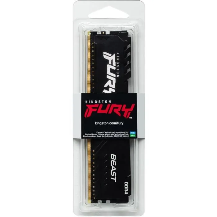La mémoire PC Kingston FURY Beast DDR4 apporte une puissante augmentation des performances pour les jeux, l'édition vidéo et le rendu avec des vitesses allant jusqu'à 3733 MHz. Cette mise à niveau rentable est disponible à des vitesses de 2666 MHz à 3200 MHz, avec des latences CL15 à 19, des capacités de 4 Go à 32 Go en modules simples et de 8 Go à 128 Go en kit. Son overclocking automatique Plug N Play à des vitesses de 2666 MHz est disponible sur Intel XMP et Ryzen. Le module FURY Beast DDR4 reste froid grâce à son diffuseur de chaleur élégant et mince. Testée à 100% et garantie à vie, cette mise à niveau est très facile et sans problème pour votre système Intel ou AMD.