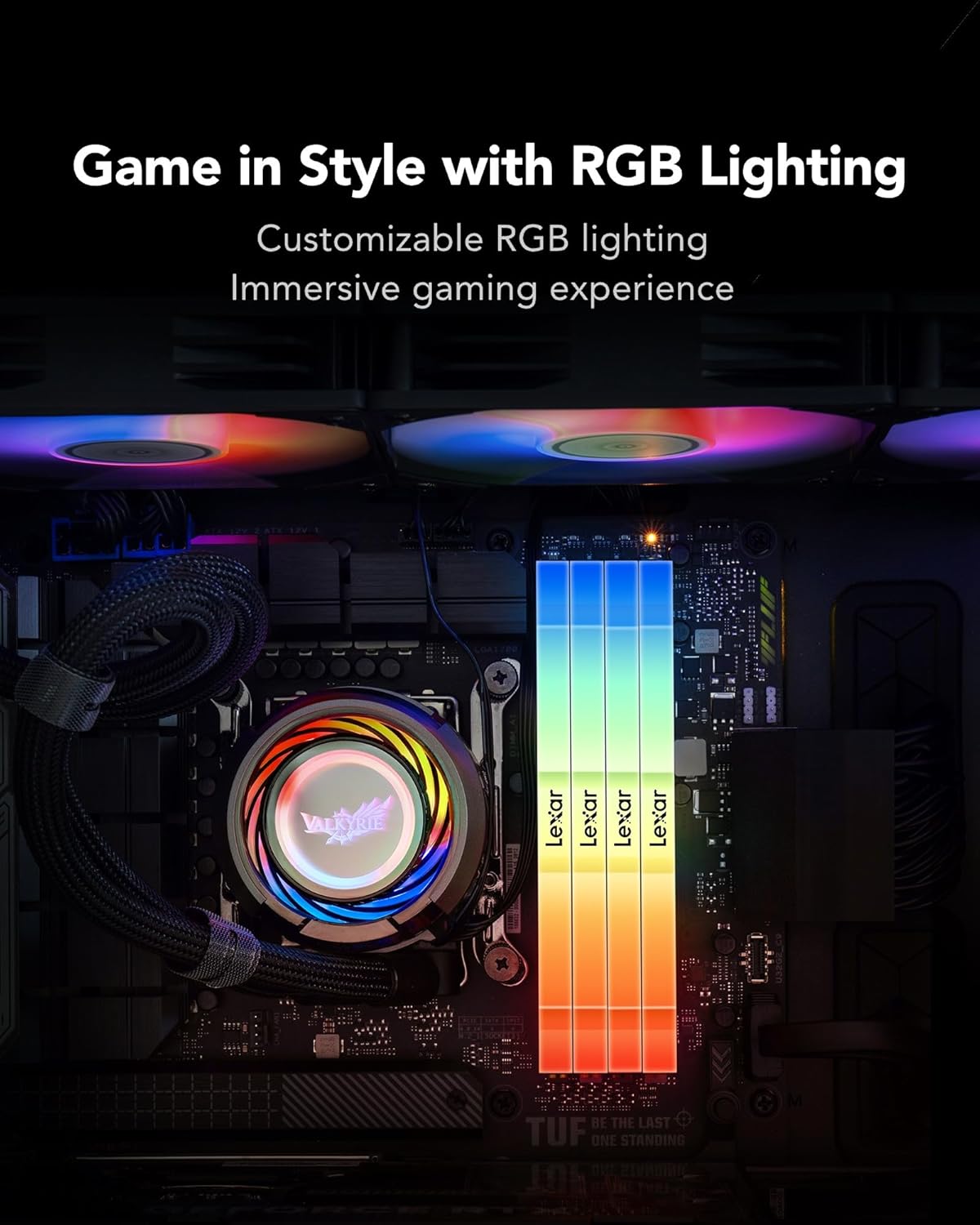 Lexar Thor RGB 32Go (2x16Go) DDR5 6000MHz Offrant une capacité impressionnante de 32Go, la mémoire PC Lexar LD5U16G60C38BG-RGD vous permettra de profiter pleinement de votre expérience informatique. Avec cette mémoire DDR5, vous n'aurez plus à vous soucier des problèmes de stockage et pourrez exécuter plusieurs programmes simultanément sans ralentissement. Un design élégant et moderne Disponible en deux coloris tendance, or et noir, cette mémoire apportera une touche d'élégance à votre setup informatique. De plus, grâce à ses LED RGB, elle ajoutera une ambiance lumineuse personnalisable pour une immersion totale dans vos jeux et applications. Technologie de pointe pour une vitesse incomparable Avec une fréquence de 6000MHz (PC48000), cette mémoire Lexar vous garantit des performances inégalables pour une expérience informatique fluide et rapide. Que vous soyez un gamer invétéré, un professionnel du montage vidéo ou simplement un utilisateur exigeant, cette mémoire répondra à toutes vos attentes.