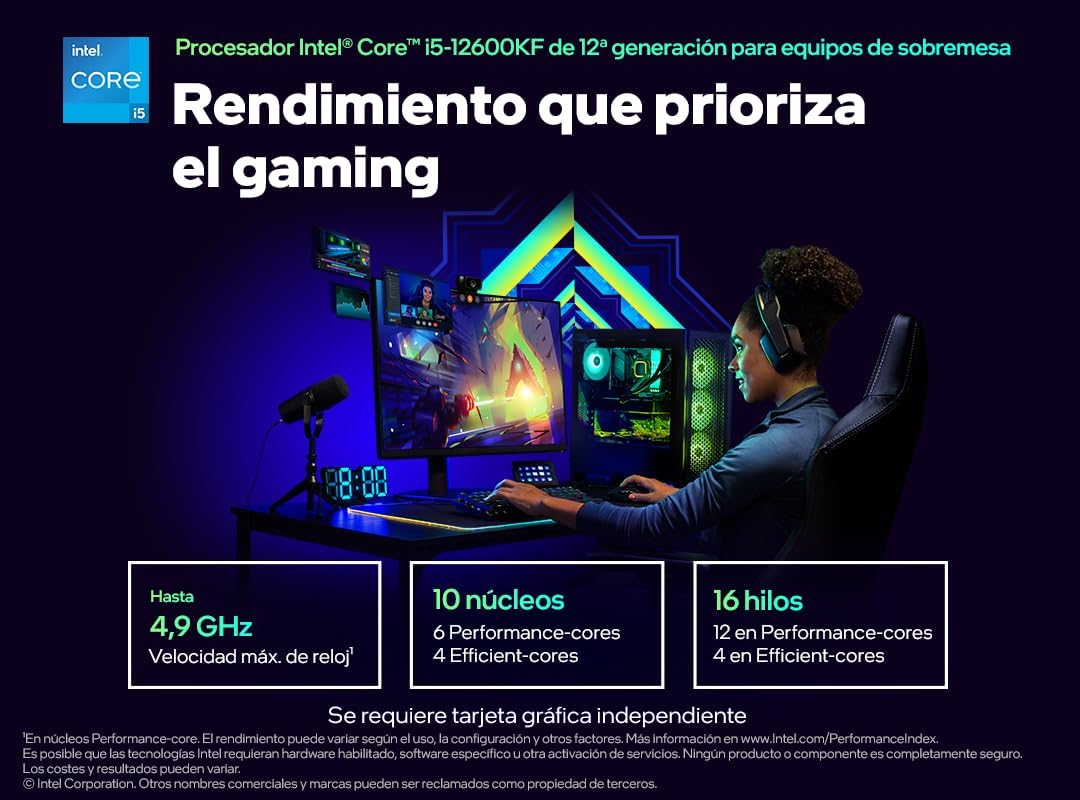 Processeur Intel® Core™ i5-12600KF de 12ᵉ génération débloqué pour PC de bureau, sans unité graphique. Les processeurs Intel® Core™ de 12ᵉ génération débloqués pour PC de bureau prennent en charge les technologies PCIe 5.0 et 4.0, ainsi que les mémoires DDR5 et DDR4. Ils sont optimisés pour la bureautique, les jeux vidéo et l'overclocking. Carte graphique dédiée requise. La solution thermique n'est PAS incluse. Compatible avec les cartes mères basées sur le chipset série 600 125 W.